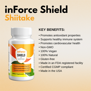 inForce Shield harnesses the ancient wisdom of holistic eastern practices with the precision of modern science to bring you a groundbreaking supplement. Utilizing the most potent strain of Lentinus edodes, more commonly known as Shiitake mushroom, we've created a product steeped in centuries of holistic use and validated by contemporary clinical research.